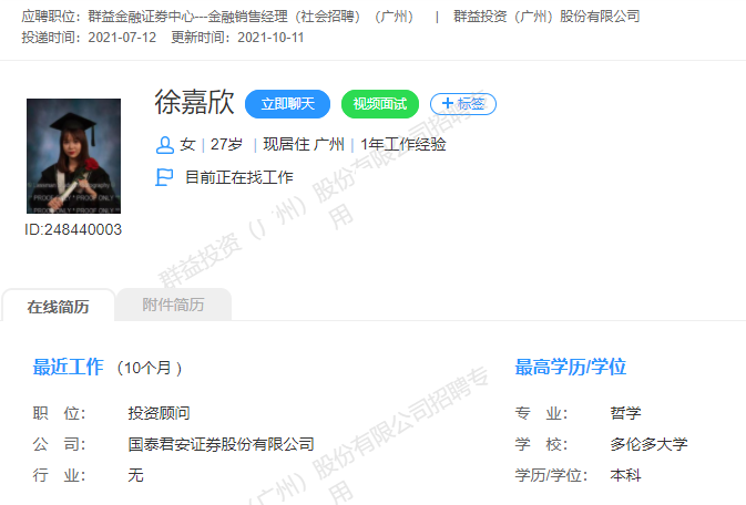 《通知》中还提出,引进的人才要重点培养使用,优先参加海外考察访问、出国深造、企业交流与合作等,截止2021年11月15日,通过前程无忧发送到群益股份人力资源部的简历达568份,公司人力资源部结合公司的实际情况,经过认真筛选,现特此对来自世界排名第6位的哥伦比亚大学、世界排名第8位的伦敦大学学院、世界排名第15位的爱丁堡大学、世界排名第16位的多伦多大学、世界排名第22位的香港大学、世界排名第24位的美国西北大学、世界排名第27位的英国曼彻斯特大学、世界排名第29位的新加坡国立大学、世界排名第36位的昆士兰大学、世界排名第39位的香港中文大学、世界排名第51位的美国马里兰大学、世界排名第52位的新南威尔士大学、世界排名第73位的阿德莱德大学、世界排名第83位的弗赖堡大学、世界排名第92位的英国西苏格兰大学、世界排名第103位的英国桑德兰大学、世界排名第185位的莱斯特大学、世界排名第195位的麦考瑞大学、世界排名第197位的澳大利亚纽卡斯尔大学等29位毕业生进行社会公示,其中获得博士学位的有2人,获得硕士学位的有18人,获得MBA学位的有7人,获得学士学位的有2人,公示时间15天,公示合格之后方可进入面试考核。